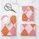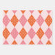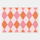 Mid Century Starbursts on Orange Pink Diamonds Wrapping Paper Sheet
