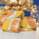 This is elegant mid century atomic starbursts pattern on orange circles and yellow half circles on squares. It's great looking wrapping paper for parties and occasions