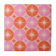 This is elegant mid century modern white atomic starbursts pattern on pink and orange circles. It's great looking ceramic tile for anyone who love decorative retro 50s and 60s designs