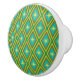 This is elegant yellow mid century atomic starbursts on retro diamonds pattern in teal, red and green. It's great ceramic knob for anyone who love mid mod designs