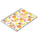 Fun ditzy pattern of fresh farmers’ market fruit in a Mid Century Modern style, with bold, vibrant colors and that distinctive grainy Risograph texture. Made of layers of red, yellow, and blue, with color misalignments and grunge effects.