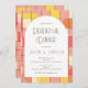 Trendy Retro Mid Modern Geometric Pink Yellow Orange Rehearsal Dinner Invitation