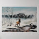 Beautiful Oil painting of elk in snow with mountains. Art by David E Paul. Print of David’s oil paintings.