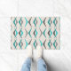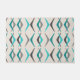 A mid 1950s atomic age abstract art design with rows of boomerangs. Aquamarine blue-green.