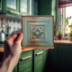 Elevate your space with the chic sophistication of the "Geometric Elegance Ceramic Print Tile." This tile features a captivating geometric pattern with layers of concentric squares and a central diamond, rendered in soothing tones of teal, accented with earthy browns and set against a warm, cream backdrop. The design mimics the illusion of depth, but as a printed tile, it boasts a completely smooth surface, making it ideal for sleek wall applications. Derived from a high-quality photograph of an original relief tile, this piece retains the artistic nuances of the original texture in a versatile, printed form. Perfect for adding a modern twist to any room, it's a stylish homage to contemporary design, ready to complement your decor.