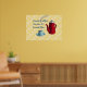This retro poster has a midcentury good coffee sign with a retro percolator coffee pot with the saying “Good Coffee Means A Good Day”. The design is a yellow chequered background, blue mug filled with coffee and vintage red coffee percolator. The whole design is done in a classic vintage print textures. This wall poster is great to brighten up any mid century modern kitchen decor.