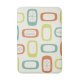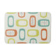 A simple minimalist 1950s abstract art pattern with rounded rectangles and sputnik starbursts in chartreuse, turquoise and orange.