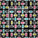 Midcentury MCM Rounded Rectangles Black Colorful Fabric