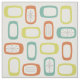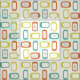 A simple minimalist 1950s abstract art pattern with rounded rectangles and sputnik starbursts in chartreuse, turquoise and orange.