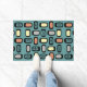 Midcentury MCM Rounded Rectangles Turquoise Colorf Doormat