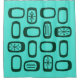 A simple minimalist 1950s abstract art pattern with rounded rectangles and sputnik starbursts.