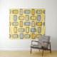 Midcentury MCM Rounded Rectangles Yellow Grey Tapestry