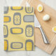 Midcentury MCM Rounded Rectangles Yellow Grey Tea Towel