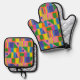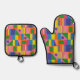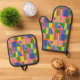 Midcentury Modern Colourful Retro Geometric Patter Oven Mitt & Pot Holder Set