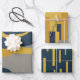 Midcentury Modern Retro Patterns Mustard and Navy Wrapping Paper Sheet