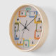 Midcentury Modern Shapes surround the numbers on this retro style clock. The interlacing modern squares are in retro colors from the 1950s and 60s.