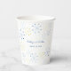 These custom printed wedding paper cups feature a fun retro vibe with a Mid-century Modern style design. Colourful atomic asterisks or snowflake shapes decorate these party supplies. The asterisk shapes are in shades of blue and yellow. Use the template fields to easily personalise these with your information.