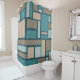 Midcentury Rectangles Pattern Teal & Gold Shower Curtain