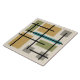 This atomic-age inspired mid century modern design has bold lines and geometric shapes in to appeal to anyone who loves 1950s abstract art. Colours are gold orange, green, turquoise blue, grey.