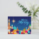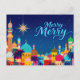 Send a truly unique and vibrant holiday greeting with this exotic and colorful design. The illustration features a fantastical cityscape reminiscent of Middle Eastern or North African architecture, with brightly colored domes and minarets set beneath a deep blue, starry night sky. A brilliant Star of Bethlehem hangs above the skyline, complementing the cursive "Merry Merry" greeting. This card is perfect for those seeking an unconventional, globally-inspired way to celebrate Christmas or the festive season.