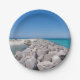 Paper party plates featuring a view looking out at the beautiful Emerald Coast of the Gulf Of Mexico in the middle of a rock Jetty at Shell Island, in Panama City Beach, Florida. Looking for more products? Visit my store: http://www.zazzle.com/timelessmomentsphtgy