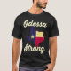 I give wanted to give this a 4 instead of a 5 because these Basic DARK T0shirts run unexpectedly SLIM or Narrow. Which is great if you do not have a potbelly, but I have a paunch. It isn't the shirt's fault that I've got a beer belly. The design and shirt itself is a quality cotton shirt. The color is more of a deep purple, but still a very pretty color. The Basic DARK T-shirts run a bit SLIMMER than the Basic Ts. The neck is a fraction narrower (or seems to be narrower) also. I'm a paunchy middle-aged woman and my neck is 12 inches (31cm) thick and the neckline fell about the same as in the photo of the man, and I had the desire to tug it a bit. So if you're a thick necked man or like loose shirts, be aware these are slimmer shirts. Once I get rid of my lockdown paunch it'll look great. The shirt washed well in cold water with no apparent bleeding. We don't have a dryer, so it hung dry. Did not shrink. Love the colors and the design. The design looks smaller on my shirt than it does on the model on-line. But still, it looks good on the shirt. The printing looks as it does on the model, just the size seems fractionally smaller. Washed garment in cold water, hung dry and design appeared unaffected.