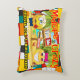 The cushion is small to medium sized. It can be washed. It is well constructed. The material used is pleasant and feels decent quality. It has a very slight plush feel which is good. It is well labelled and its care clearly stated. Theres nothing not to like about it. All in all a good item. The deduction of one star overall is due to long delays in delivery to the UK. It's not clear if this was due to Zazzle or somewhere else in the chain as I did not receive status updates of dispatch or progress. I cannot comment anymore on that other than to say that was our experience but it may not be the same for you. The printing was surprisingly close to what we were expecting. Its an art piece and on material so its hard to assess the precision of printing but it seems close to the original. The soft lines are reproductions of the original. The colour is a fair reflection of the painting. This was printed in the US and it looks like US quality. No issues.