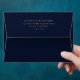 This is a minimalist style image featuring an elegant address label design. The text "Lauren & Benjamin" stands out in a classic serif font, paired with the address details below it in a clean and simple layout. The monochromatic color scheme of navy blue on white gives it a timeless and sophisticated feel. Perfect for wedding invitations or formal correspondence, this design exudes elegance and refinement.