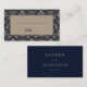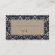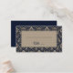This is a vintage style image featuring an elegant table number card set against a rich, dark blue background adorned with intricate gold floral patterns. The central beige rectangle provides a clean space for writing the table number, framed by delicate lines and bordered in navy to match the ornate backdrop. It exudes sophistication and charm, making it perfect for adding a touch of classic elegance to weddings or formal events.