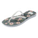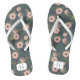 Our trendy floral monogrammed flip flops feature a pattern of coral pink flowers and lush green leaves on a deep, smoky midnight blue background. Trendy blush pink and navy blue colour palette is perfect for adding personal style to your summer look! Personalise with your single initial monogram in matching midnight navy blue on each heel, or delete the sample initial, decorative dots and white badge element if not personalising.