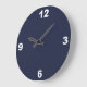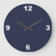 A simple wall clock with a Midnight Blue background and large white numbers marking the 12, 9, 6 and 3. Customise this clock to add your custom text, change background colours and more.