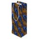 Midnight blue and orange peacock feather pattern wine gift bag