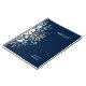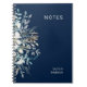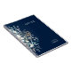 This beautiful notebook features a dark, midnight blue background and a floral bouquet made up of cool white, blue and other soft colours. Watercolor flowers and leaves add a feminine yet elegant touch to this design.
