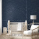 Beautiful wallpaper features a celestial sky of gold stars on midnight Blue background.
