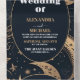 This invitation is a perfect blend of elegance and celestial charm, designed to set the stage for a truly enchanting wedding. The deep, midnight blue background and shimmering gold accents create a sense of mystique and sophistication, perfect for your celestial-inspired celebration.