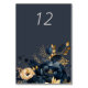Midnight Blue Gold Luxe Floral Wedding Table Card
