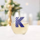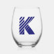 Midnight Blue Modern Monogram Initial Letter Stemless Wine Glass
