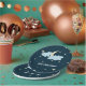 Cute midnight blue baby shower paper plates with a starry night and yellow moon behind some blue clouds. All the text is in white and can be personalised. Illustrated and designed by Patricia Alvarez.