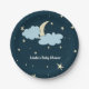 Midnight Blue Moon & Stars Elegant Baby Shower Paper Plate