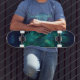 *~* Midnight Blue Sky Cosmic Emerald Feather Boho Skateboard