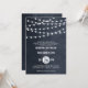Chic modern summer wedding invitation design with simple elegant glowing string lights hanging across the top and a classy mix of modern and calligraphy script fonts on a printed faux watercolor texture background. A simple and stylish preppy design, perfect for summer! Click the CUSTOMIZE IT button to customise fonts, move text around and create your own unique one-of-a-kind invitation design.