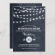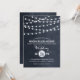 Chic modern summer wedding invitation design with simple elegant glowing string lights hanging across the top and a classy mix of modern and calligraphy script fonts on a printed faux watercolor texture background. A simple and stylish preppy design, perfect for summer! Click the CUSTOMIZE IT button to customise fonts, move text around and create your own unique one-of-a-kind invitation design.