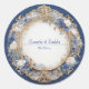 Make your celebration unforgettable with this Midnight Blue Victorian Floral Wedding Sticker, a stunning blend of regal sophistication and romantic charm. This ornate design features an intricately detailed gold frame layered over a rich midnight blue background, adorned with soft ivory roses, powder blue petals, and delicate florals. The central space is ideal for custom names, initials, wedding dates, or a meaningful message—making this sticker both elegant and versatile.