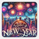Ring in the New Year with our 'Midnight Celebration: Happy New Year Card.' This striking card captures the essence of New Year's Eve with a spectacular fireworks display over a lively city skyline. As the clock strikes midnight, the sky bursts into an array of colourful fireworks, reflecting beautifully off the urban landscape. Below, the words 'Happy New Year' are boldly inscribed, bringing festive cheer to your message. Printed on high-quality paper, this card is perfect for sending your best wishes for the year ahead to friends, family, and colleagues."