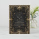 This elegant celestial design features intricate golden sunbursts, lunar motifs, and baroque flourishes on a deep black backdrop — perfect for couples who want a luxurious and mysterious wedding aesthetic. Inspired by vintage astronomy and royal decor, it captures the magic of the cosmos with timeless sophistication.