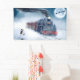 Midnight Christmas train with girl and Santa with sleigh getting ready to board the steam locomotive. frontiernow.com