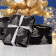 This elegant silver and black wrapping paper design will look as chic as your holiday wardrobe. Goes great with red wine!