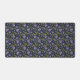 Add a little cheer to your work with a whimsical, hand-painted watercolor floral patterned desk mat, featuring playful purple-lavender daisy blooms dancing on a navy blue background.