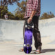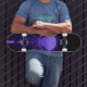 Ride into the night with this synthwave skateboard. This design features a dark, highway stretching toward a massive purple neon sun, lined with silhouetted palm trees for the ultimate lo-fi aesthetic. It’s the perfect deck for anyone who loves the calm yet electric vibe of vaporwave nightscapes.