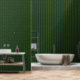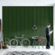 Dark green wallpaper with vertical yellow pinstripes pattern.